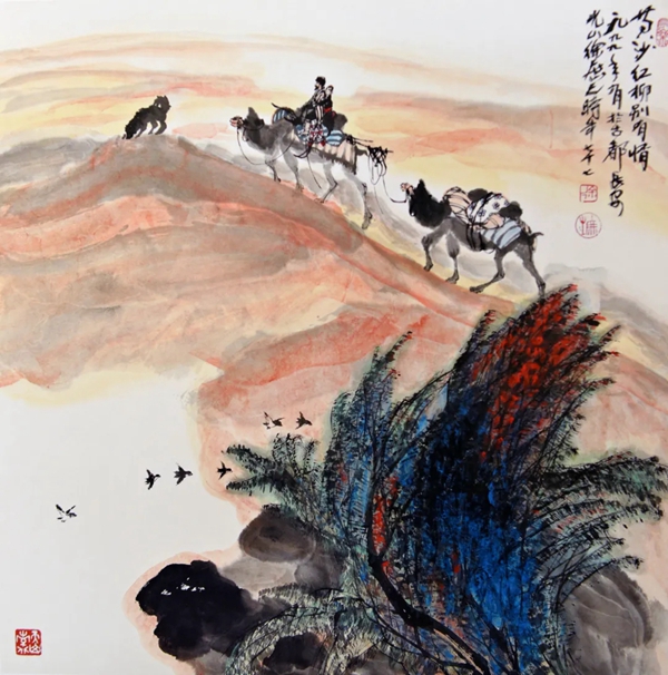黄沙红柳别有情 国画