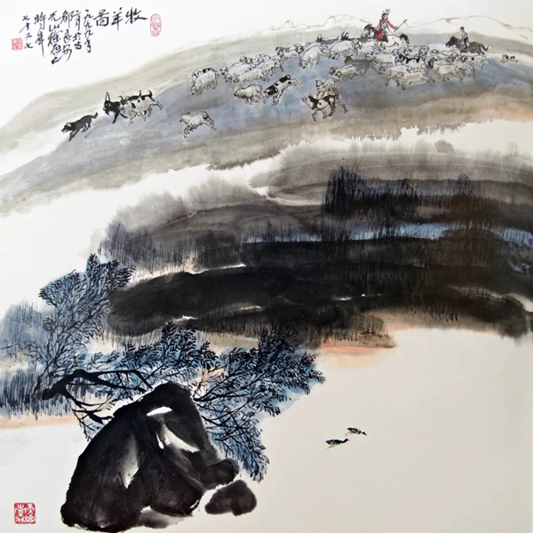 牧羊图 国画
