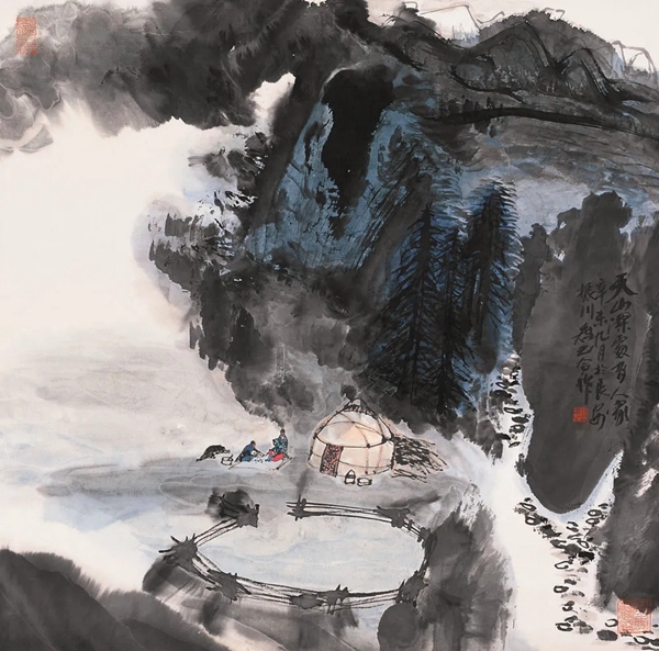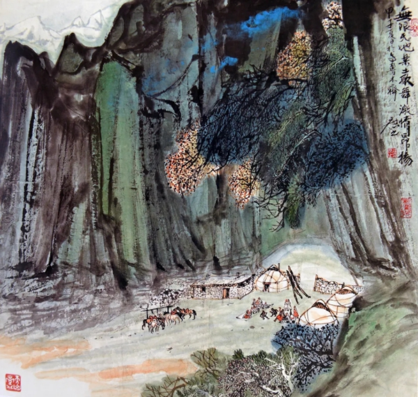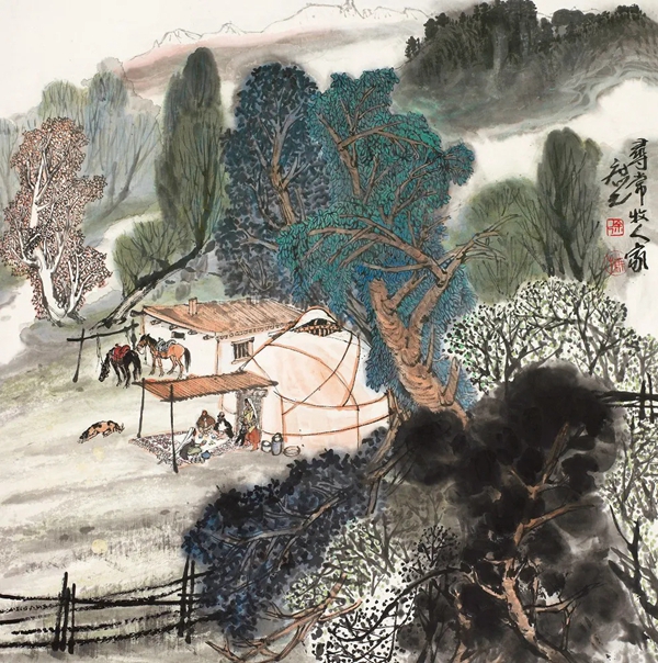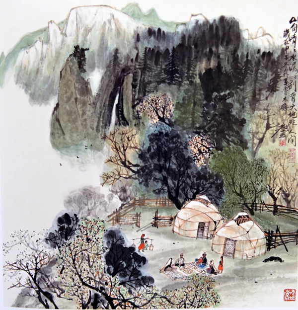 天山深处有人家 国画