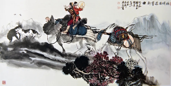 丝绸古道普新曲 国画