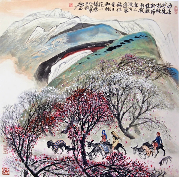 天山幽出春意闹 国画