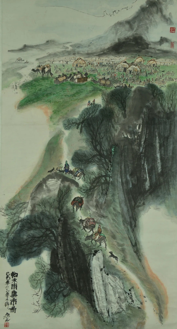 帕米尔集市图 国画