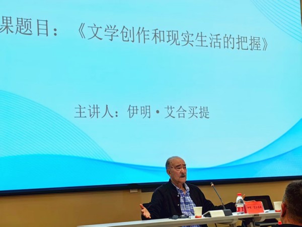 新疆艺术学院党委原副书记、院长伊明·艾合买提带来《文学创作和现实生活的把握》专题讲座。他通过自身的文学创作经验,指导学员如何从生活中提炼素材、塑造人物,引发学员热烈讨论。