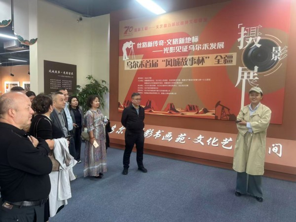 采风后期,采风团的脚步转向克拉玛依区与白碱滩区。白碱滩区百里油区里,林立的抽油机、绵延的输油管道勾勒出工业文明的壮阔画卷,现场观摩中,采风团沉浸式感受着“共和国石油长子”的硬核实力;克拉玛依市文博院里,一件件老物件、一幅幅历史照片,串联起城市从“戈壁荒滩”到“石油新城”的蜕变历程,让作家们读懂了油城的过往与初心。午后的行程更添文化温度:石油纪念广场的“大油泡”折射着城市荣光,克一号井遗址诉说着“第一口油井”的开拓故事;沪克交流驿站·朱生军非遗艺术馆里,非遗技艺绽放着传统之美;杨鸣山艺术馆中,一幅幅画作以细腻的笔触描绘着新疆的风土人情,让采风团在艺术熏陶中深化了对地域文化的理解。