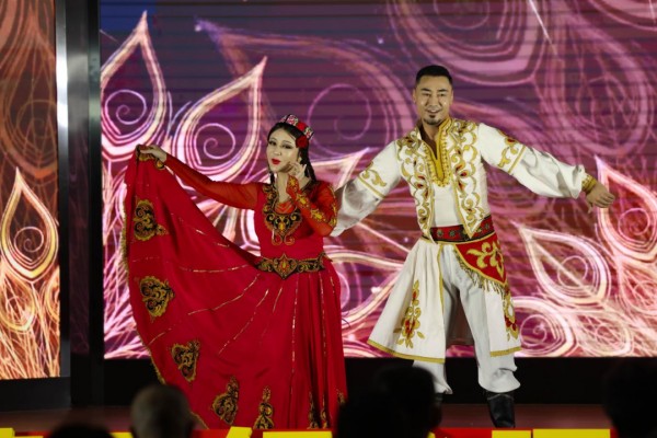 活动开篇精彩纷呈,新疆艺术剧院歌舞团舞蹈家演绎的维吾尔族舞蹈《掀起你的盖头来》,以浓郁的民族风情瞬间点燃现场氛围。青年女低音歌唱家尕尕献唱《吐鲁番的葡萄》等经典曲目,婉转歌声传递边疆温情;乌鲁木齐边检站民警张真真带来情景讲述《石头与银燕》,以生动叙事诠释警营担当;乌鲁木齐市公安局特警勤务支队乐队弹唱《海阔天空》等曲目,激昂旋律中尽显战友深情。随后,新疆网络文艺家协会副主席王洋演唱《新疆人》《欢聚》,青年魔术师刘喆表演魔术《幻影》,音乐人鲍涵献上单簧管独奏《单簧管波尔卡》。乌昌协作区干警演绎的情景剧《携手向未来》引人入胜,相声艺术家于海波、韩杨带来的《天山南北新疆人》诙谐幽默,引得现场掌声不断。最后,哈萨克族歌曲《恰秀》与舞蹈《麦西来甫》登场,艺术家与警官现场互动共舞,将活动氛围推向高潮。