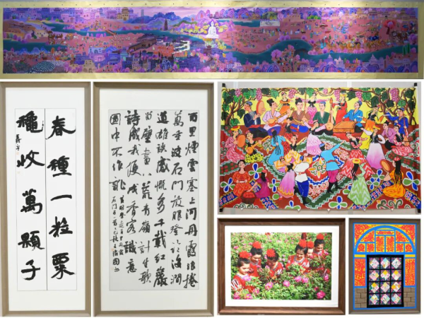 近日,由新疆文联主办,新疆民协、新疆书协、新疆摄协承办,沙雅县文联、沙雅县图书馆协办的2025年“强国复兴有我”群众性主题教育活动暨“丝路粮仓结硕果 各族共庆丰收节”新疆农民画书法摄影作品展(沙雅巡展),正在沙雅县图书馆展出。展览共展出40幅农民画作品、20幅书法作品、20幅摄影作品,展出的作品是新疆广大文艺工作者深入生活、扎根人民,以深情的笔触、敏锐的镜头抒写新时代农民精神风貌的集中展示。