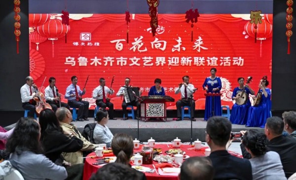 12月26日下午,“百花向未来”乌鲁木齐市文艺界迎新联谊会在野马国际大厦举办。乌鲁木齐市文艺工作者齐聚一堂,以文艺之桥联结情谊,以艺术之美共迎新年,奏响新时代文艺繁荣发展的昂扬乐章。整场联谊会节目精彩纷呈、跨界融合,尽显多元文化魅力。一个个形式多样、内容鲜活的文艺节目,既有对中华优秀传统文化的传承创新,也有对新时代美好生活的热情赞颂。