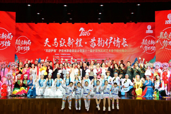 2月8日,主题为“天马跃新程·苏韵伊情长”的“苏韵伊情”伊犁州新春联谊会暨第十一届伊犁州民间艺术春节联欢晚会在伊犁大剧院举行,为广大观众献上了一场洋溢着浓郁时代气息的文化盛宴。