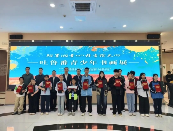 4月4日,“翰墨润童心·丹青绘火洲”吐鲁番青少年书画展开幕式在吐鲁番市美术馆举行。 此次活动共收到投稿作品800余件,经专家评审,最终评选出193件优秀作品入展,同时评选出一等奖10名、二等奖20名、三等奖40名、优秀奖39名及优秀组织单位奖10名。这些作品题材丰富、形式多样,尽显火洲青少年的艺术才情与家国情怀。现场为获奖学生代表及优秀组织单位代表颁奖。颁奖结束后,学生代表与优秀团体代表依次上台发言。