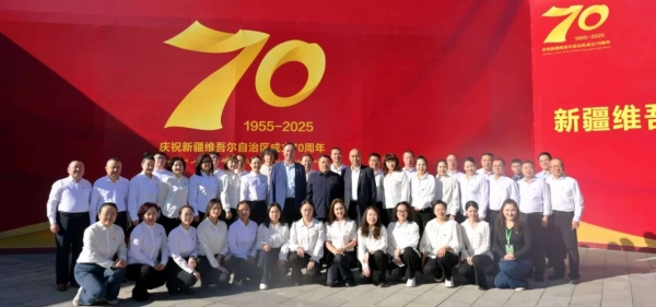 在宽敞明亮的展厅内,全体干部抱着激动热切的心情,在工作人员的讲解下,沿着“万方乐奏换新天”“潮涌天山展宏图”“美丽新疆铸辉煌”三大展区依次参观。展厅内丰富的实物展品、生动的图片影像和沉浸式场景,全方位、多角度呈现了70年来新疆在党的领导下发生的翻天覆地变化——从戈壁荒滩到绿洲新城,从交通闭塞到路网纵横,从温饱不足到全面小康,每一个板块都让干部们深刻感受到新疆发展的蓬勃活力和各族群众的幸福生活。