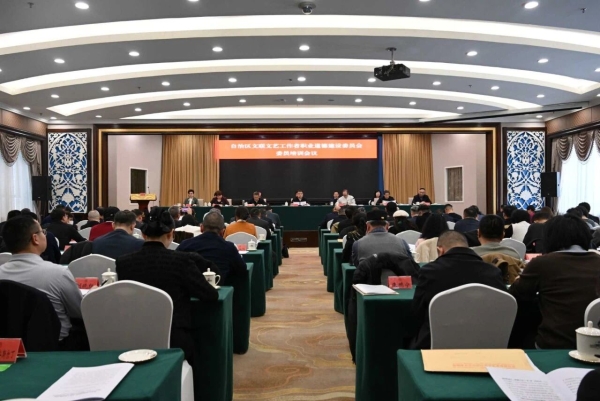 2月9日下午,新疆文联文艺工作者职业道德建设委员全体会议暨会委员培训会议在乌鲁木齐召开。自治区文联党组书记、副主席邓选斌出席会议并讲话。自治区文联党组成员、副主席郐振明主持会议。自治区文联领导班子成员,自治区文联文艺工作者职业道德建设委员会委员出席会议。各地州市文联,各文艺家协会服务中心、各期刊中心,部分协会、杂志社负责同志列席会议。