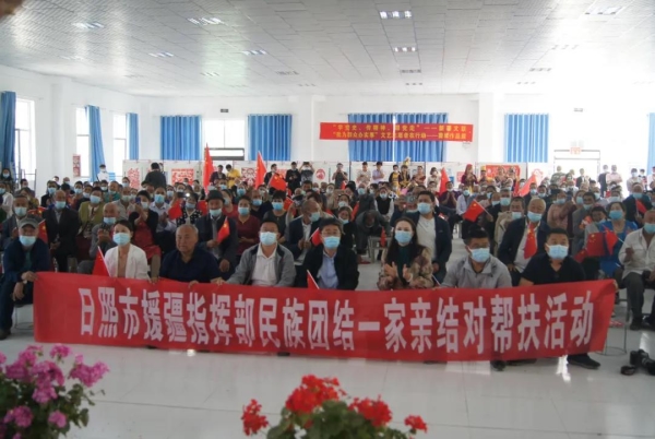 日照市援疆指挥部与自治区文联“访惠聚”工作队联合开展民族团结一家亲结对帮扶活动。图为活动现场