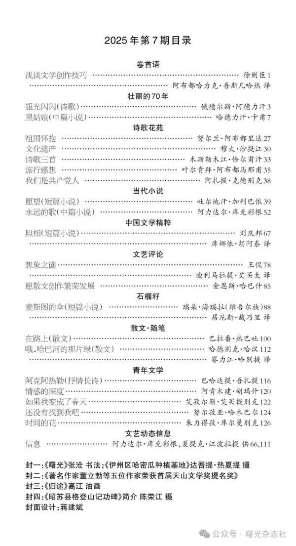 哈萨克文文学月刊《曙光》2025年第7期