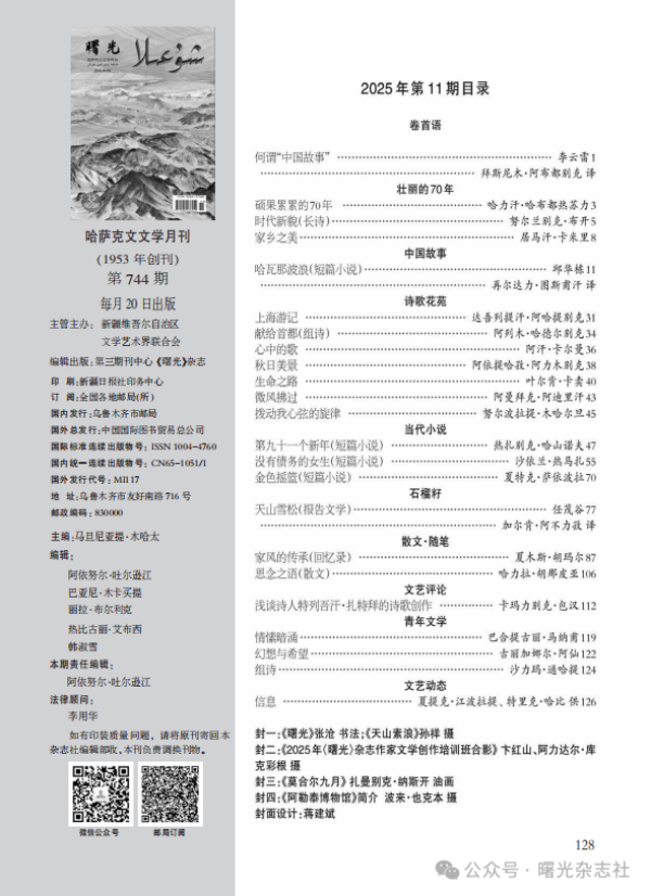 哈萨克文文学月刊《曙光》2025年第11期