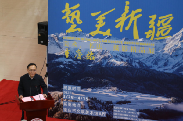 汪泽致辞并宣布展览开幕。他表示,此次展览是推动渝新两地文艺界从单点交流走向机制化协同的崭新起点,相信随着西部陆海新通道建设纵深推进和文化润疆工作持续深化,两地文化交流必将结出丰硕成果。