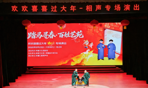 新春将至,岁寒情暖。2026年2月23日,由新疆曲艺家协会、新疆文化馆联合主办,新疆红星相声社承办的 “踏马寻春・百姓艺苑——欢欢喜喜过大年相声专场” 演出在新疆文化馆剧场成功举办,300余名各族群众到场观看。